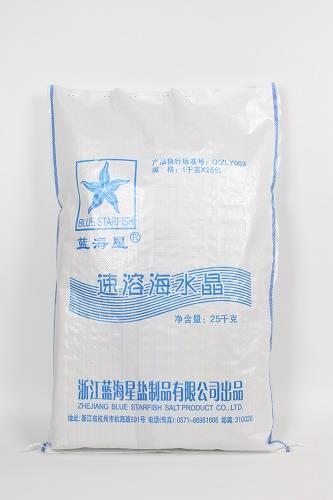 Keterangan: Biru Starfish garam paket tas di 20kgs. Plastik pp anyaman tas dengan satu sisi cetak offset dalam kata-kata biru dan double sisi laminasi untuk air bukti.